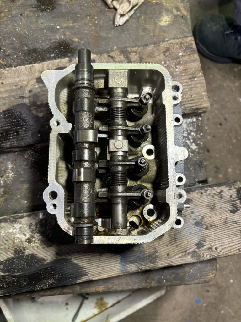 エンジンの心臓部であるシリンダーヘッドを取り外し、バルブ機構やカムシャフトを一つ一つ慎重に分解していきます。