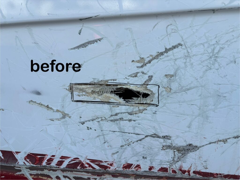 船体に開いた穴や亀裂部分は、まず構造的な強度を回復させることから始めます。FRP(繊維強化プラスチック)を使用した本格的な補修を行い、元の船体と同等以上の強度を確保します。大きな損傷箇所には複数層にわたって補強材を積層し、完全に一体化させます。