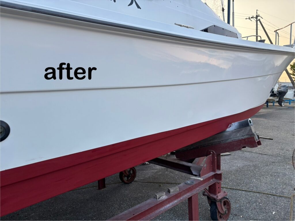 最後に船体全体を詳細にチェックし、修理箇所が分からないレベルまで仕上げて作業完了となります。